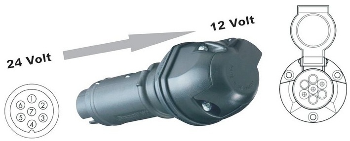 Adaptér / měnič napětí 24/12V 7/7 (7.pól.osobní/7.pól.osobní)
