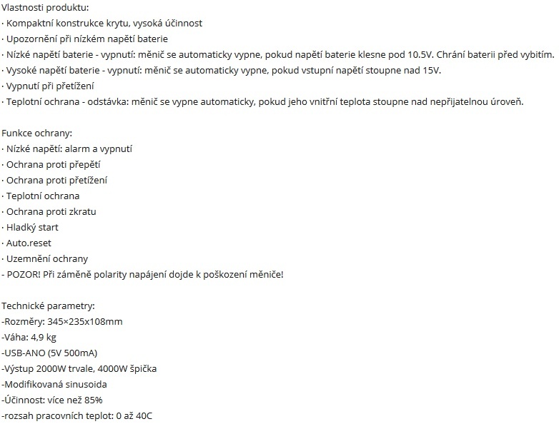 * Čistá sinusovka – vhodná pro citlivou elektroniku (TV, nabíječky).