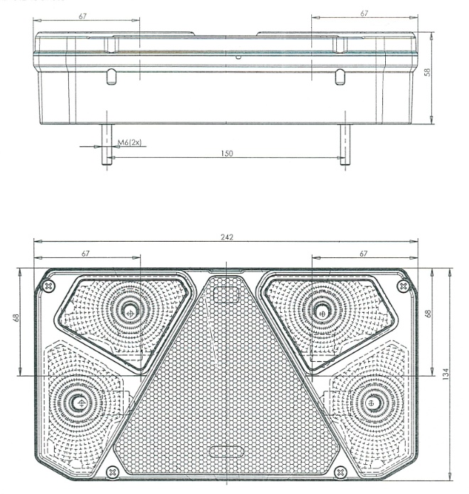 Svítilna koncová WAŠ pravá s couvačkou s SPZ