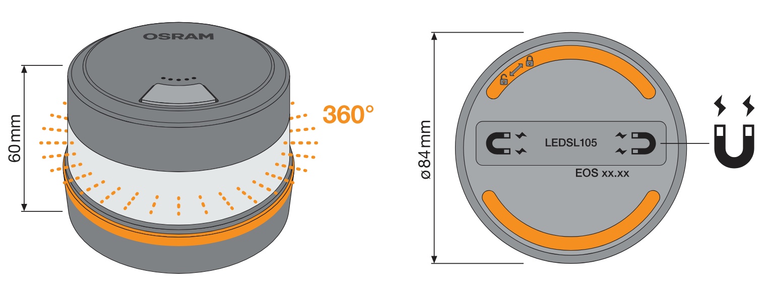 Svítilna V16 DGT 3.0 výstražná LED OSRAM guardian ROAD FLARE Signal V16 IoT včetně 9V baterie