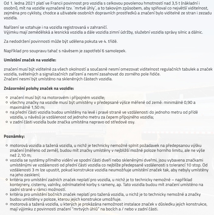 Tabule mrtvý úhel pro vozidla nad 3,5t 17x25cm povinná ve Francii od 1.1 2021 magnetická