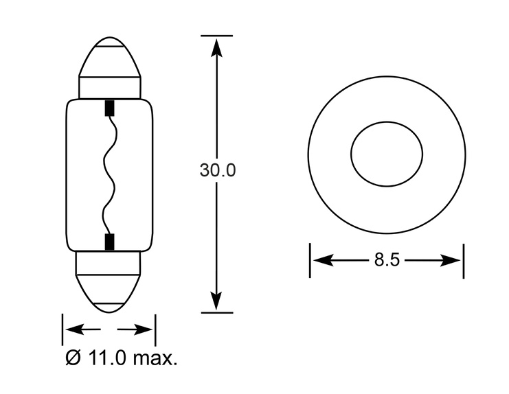Žárovka 12V/10W sufit 31mm