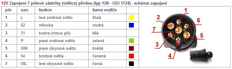 Zástrčka 7.pólová plastová 12V Erich Jaeger konektory 6,3mm