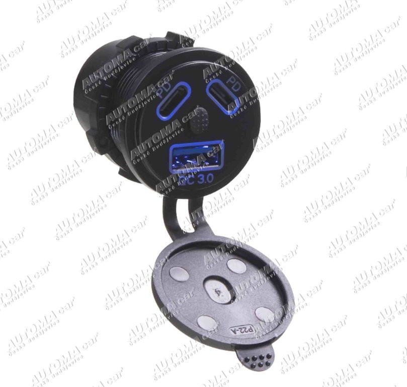 Zásuvka 12/24V USB QC3.0 + 2x USB-C PD 45W s vypínačem